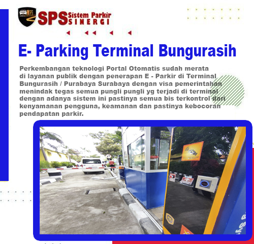 Penerapan Portal Otomatis E – Parkir di Terminal Bungurasih / Purabaya Surabaya. untuk jalur kendaraan mobil dan taxi sehingga dengan penerapam sistem ini tata ruang perparkiran bisa tertata rapi dan pastinya tidak ada pungli ( pungutan Liar ) serta meminimalisir kebocoran pendapatan perparkiran